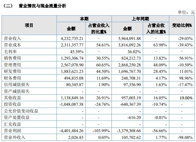皇冠博彩2023年1月1日-2023年6月30日,公司实现贸易收入423.27万元,同比下降29.03%,净失掉422.37万元,失掉同比扩大39.78%,基本每股收益为-0.0600元。