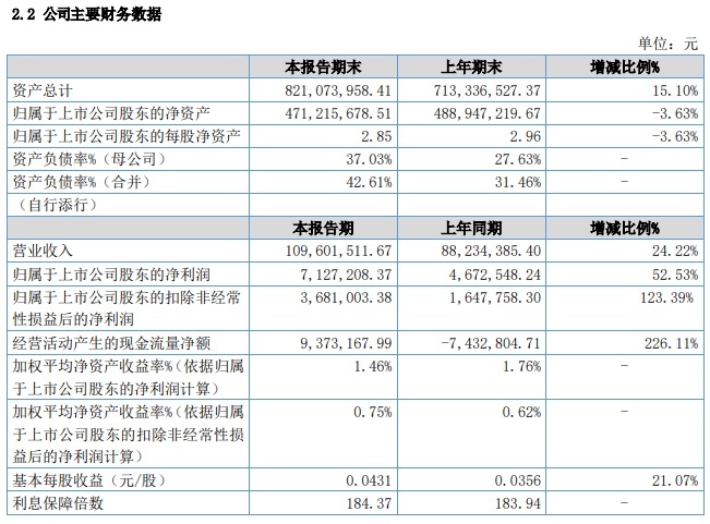 8月18日晚间,秋乐种业显露2023年半年报。数据涌现,本年上半年公司实现营收1.1亿元,同比增长24.22%;实现包摄于上市公司股东的净利润712.72万元,同比增长52.53%;毛利率为29.33%,较旧年同期的28.33%有所上升。