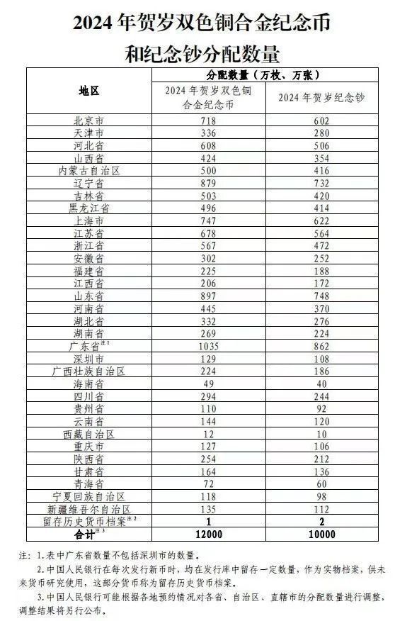 2024年贺岁双色铜合金缅念念币每东说念主预约、兑换名额为20枚。2024年贺岁缅念念钞每东说念主预约、兑换名额为20张。