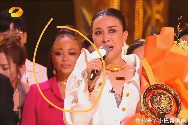 再看那英说领奖感言时其他歌手的进展,真的过于精彩。香缇莫就站在那英死后,她全程莫得笑貌,也莫得看着前边的那英,色彩有些耐东说念主寻味,仿佛写着大大的难过。