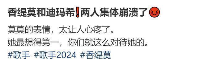 这个“爆冷”径直让网友破防:一个拿了三次冠军的东说念主,你告诉我连终末四强皆没进?还有网友看不懂这赛制,前边那么多期第一,分数皆不积攒的话还分什么排行,赛制亦然改来改去的。香缇莫早早淘汰真的让网友意难平,直言这是这届《歌手》从启动到现时最意难平的一件事。